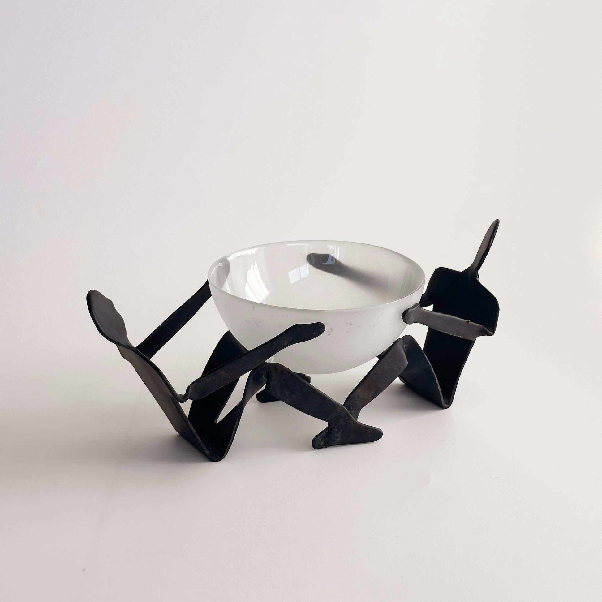 Handcrafted Iron Twin Sculptural Bowl and Stand