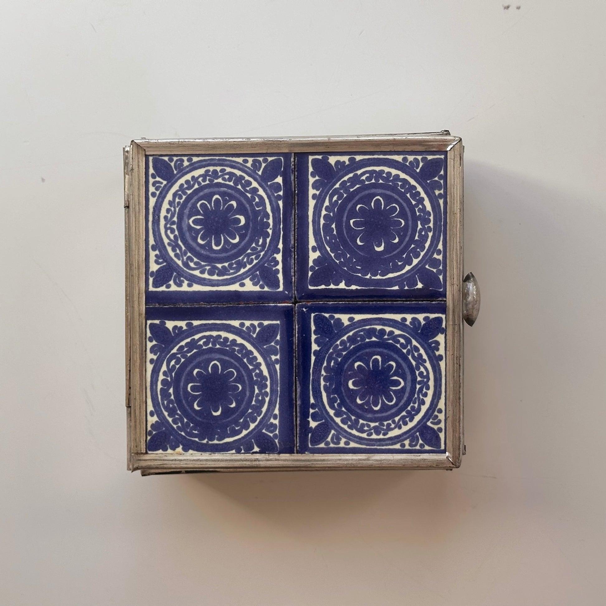 Handcrafted Punched Tin and Tile Stash Box, Made in Mexico
