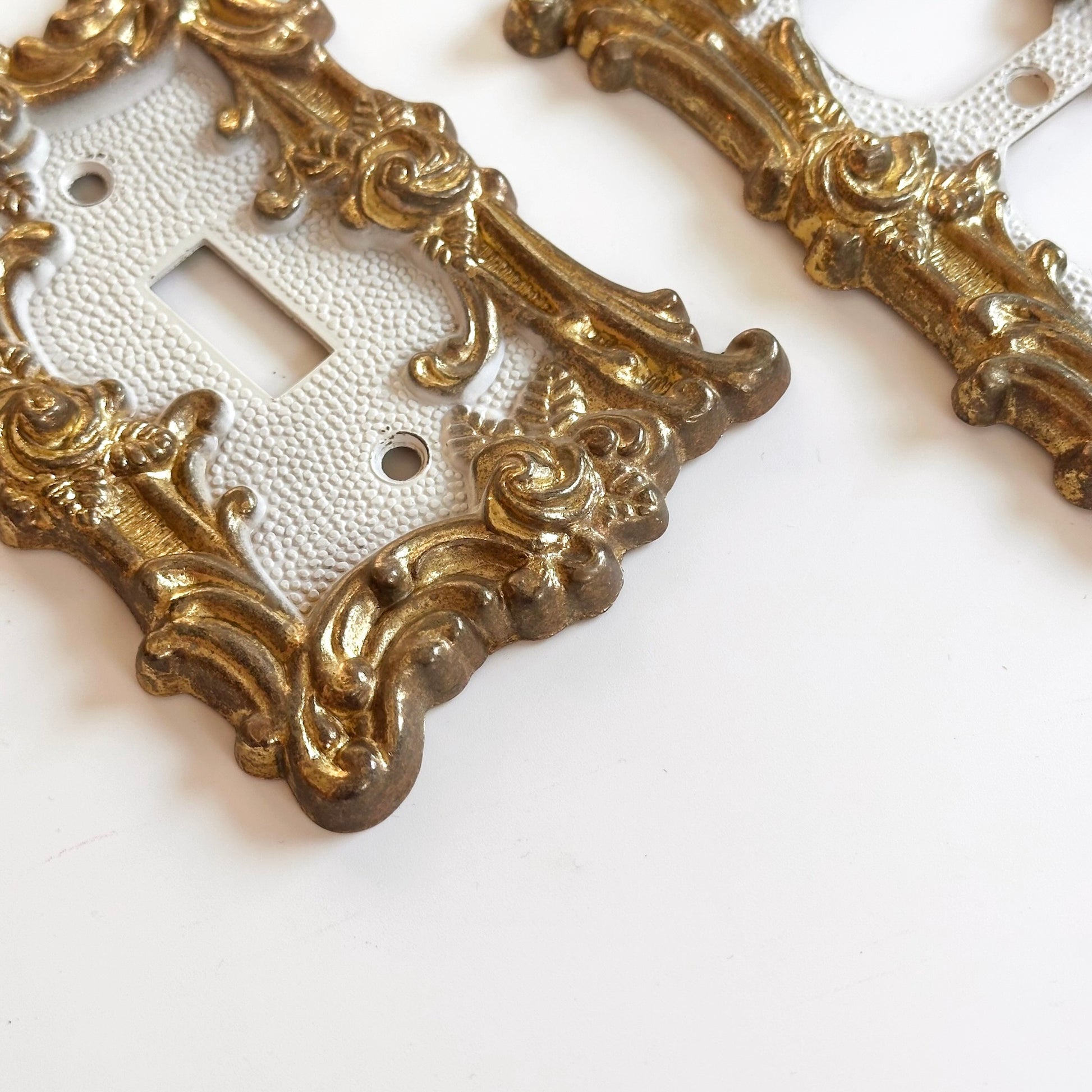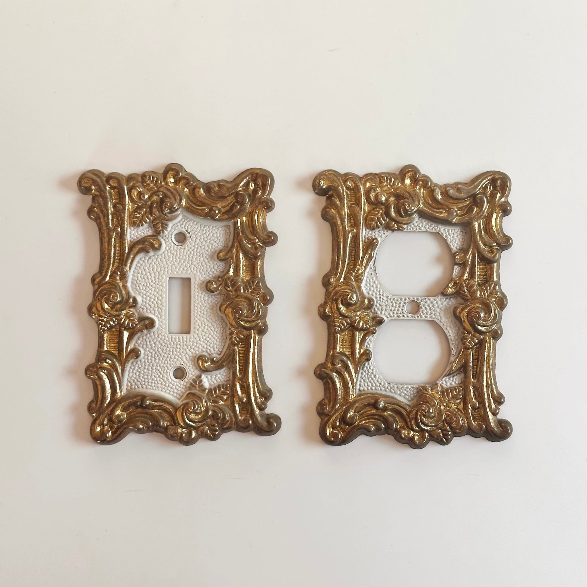 Vintage Ornate Cast Metal Gold Switchplates, Pair