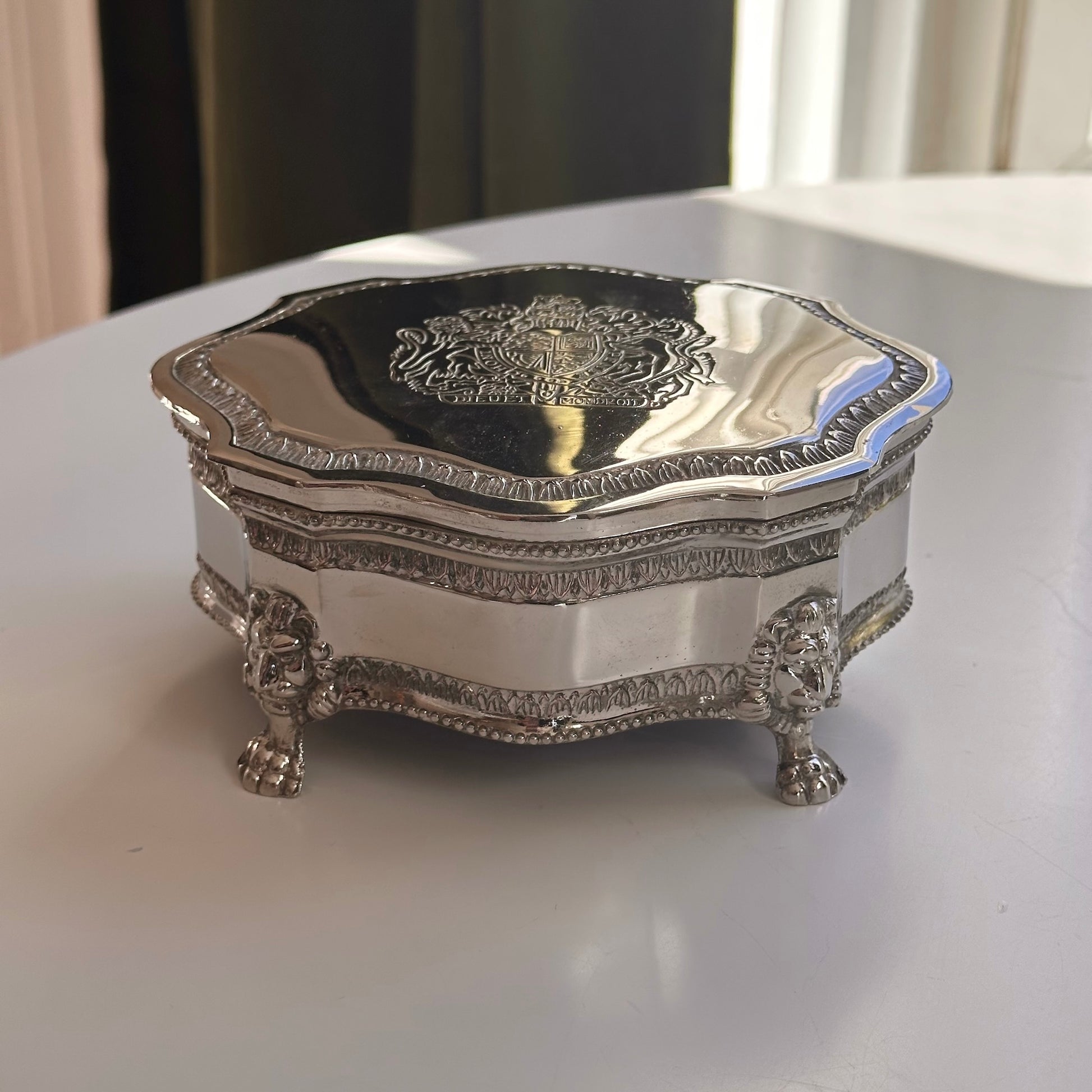Vintage Silverplated Jewelry Box with Lion Head Legs