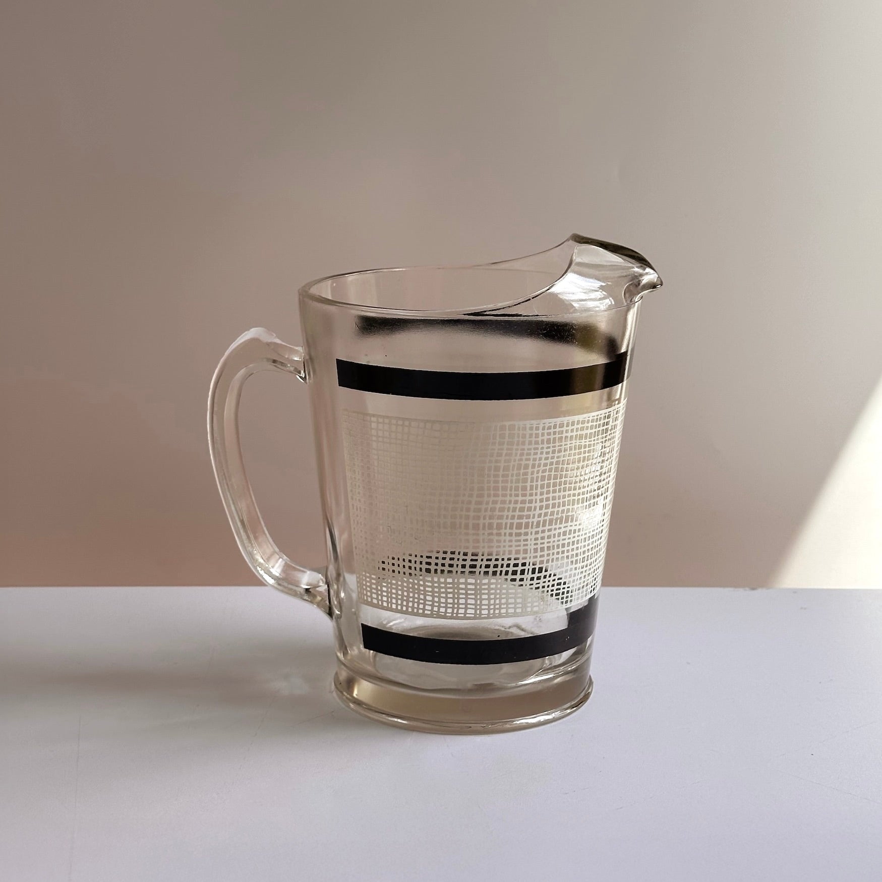 Vintage Black and White Crosshatch Glass Pitcher
